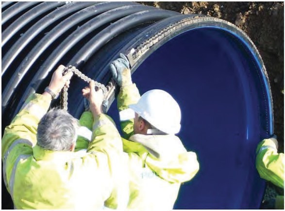 زنجیر مخصوص جفت سازی لوله ها، درون شیار مخصوص موجود روی سطوح بیرون مادگی نصب شود.